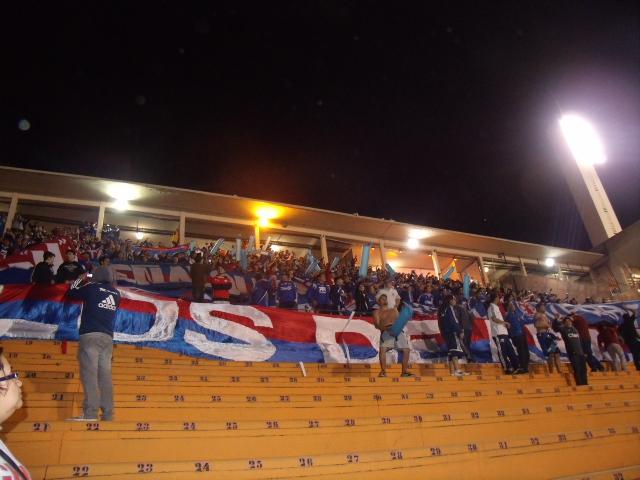 Visão geral da torcida da Universidad, chuto 1500 pessoas para mais, não pararam de cantar 1 segundo e mesmo com o placar desfavorável aumentaram o volume vocal.